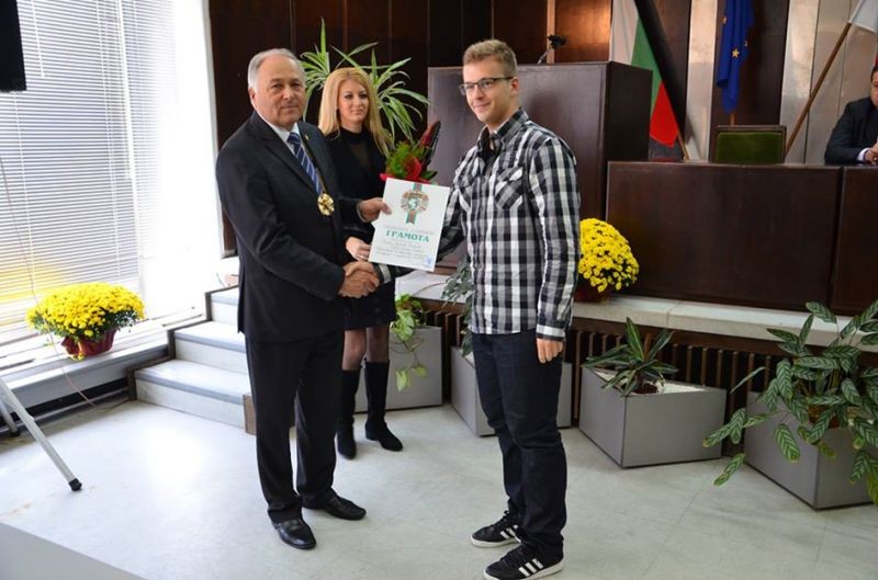 на Богдан Христинов Кючуков – ученик в 12 клас на ГПЗЕ „Захарий Стоянов” , заел трето място на Националното състезание, организирано от издателство KLETT. С грамоти бяха отличени и Димитър Антоан Каразапрянов – ученик в 10 клас на ПМГ „Добри Чинтулов” – Сребърен медал на Европейската олимпиада по природни науки, Атина;Даниела Стефанова Иванова – ученичка в 11клас на ПМГ „Добри Чинтулов” - Първо място на Националната олимпиада по английски език; Гюнеш Селимова Мустафова -12 кл. На ПГИ „Проф. д-р Д. Табаков”; Второ място на Национално състезание „Най-добра бизнес идея”, Пловдив 2014; Ирина Христова Василева – ученичка в 11 клас на НХГ „Димитър Добрович”, класирана на второ място на Национален младежки конкурс за изящни приложни изкуства и дизайн, спец. художествена тъкан, орг. от Министерството на културата; Мария Венциславова Иванова – бивша възпитаничка на Професионална гимназия по хотелиерство и туризъм-вече завършила, второ място на Националната панорама на професионалното образование, Пловдив 2014 год.