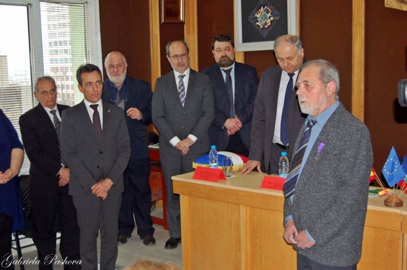Церемонията започна с трогателна реч на френски език на г-н Дамян Петров – директор на гимназията, с която той изрази съпричастност към болката на френския народ и остро осъди всякакъв вид терористични актове и посегателства над свободата на словото. Негово Превъзходителство г-н Ксавие Лапер дьо Кабан благодари и подари последния брой на вестник „ Шарли Ебдо” на гимназията и кмета на града. След това официално връчи почетното отличие на г-н Стоянов, който развълнуван благодари на ръководството на гимназията , колегите и учениците си ,като заяви, че този орден е връх в неговата професионална кариера. Изключително емоционални бяха поздравленията на неговите бивши ученици, изказани на френски език, които трогнаха и просълзиха не малко хора в залата.