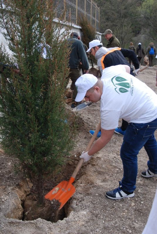 Ние, учениците от клуб „Екология” от проекта „Твоят час”, с ръководител Красимира Димова, с нескрито любопитство и нетърпение се включихме в залесяването на оформените тераси и на детската площадка. Георги, Кристиян, Данаил и Николай от 11а клас в надпревара копаеха дупки за туя, бяла акация и декоративни храсти. В съревнованието се включи и Цветан от 11б клас. Синтия, Зоя, Нели, Биляна, Гюлбен, Мария, Моника и Десислава с охота трамбоваха около фиданките и носеха вода от долния край на дола. Инженер Димо Димов - директор на Сливенското горско стопанство, и неговите специалисти лесничеи напътстваха младите еколози в залесителните практики. От очите им искреше радост и надежда за новата млада смяна, за българите, обичащи родния Балкан и милеещи за него.