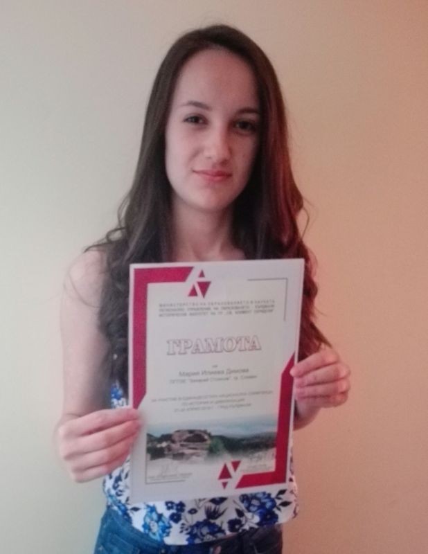 От ПГПЗЕ “Захарий Стоянов” до национален кръг достигна ученичката Мария Димова от 12 д клас, която достойно представи името на учебното заведение и продължи традицията ежегодно ученици от гимназията да се класират за национален кръг на олимпиадата по История и цивилизация.