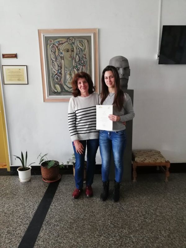 От изпратените за разглеждане на национално ниво папки комисията е одобрила проекта на Гергана Минева от десети Г клас и ученичката е поканена да защити проекта си в София.