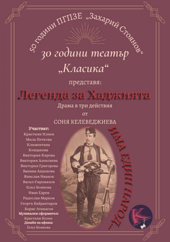 Годишнината ще бъде ознаменувана с новия спектакъл на „Класика“- „Легенда за ХАДЖИЯТА“, посветен на 181 години от рождението на славния войвода Хаджи Димитър, 50 години Езикова гимназия „Захарий Стоянов“ и 30 години от създаването на театралната формация. Сливенската публика ще може да види спектакъла на 10 май от 17,00 и 19,00 в зала „Зора“.