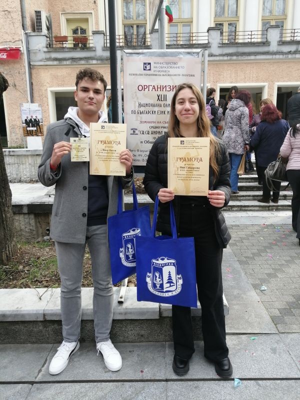 На 09.04.2023 г в гр. Велинград се проведе национален кръг на Олимпиадата по Български език и литература. Представителите от град Сливен в тази възрастова категория /12 клас/, бяха двама ученици от ПГПЗЕ „Захарий Стоянов“ – Ния Гайдарова и Явор Антов от 12 Е клас, които се представиха отлично.